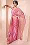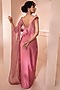 Featuring a blush pink draped saree in satin base with applique hand embroidery. It is paired with a matching blouse.