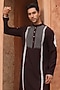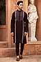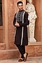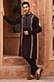 Featuring a deep brown kurta in japanese suiting base with embroidery. It is paired with slim trousers. This ensemble is perfect for formal festivities and elegant evening gatherings, showcasing understated sophistication with a modern touch.