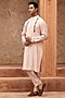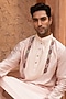 Featuring a pastel pink kurta in silk base with hand embroidery. It is paired with pants. This ensemble is perfect for formal festivities and elegant evening gatherings, showcasing understated sophistication with a modern touch.