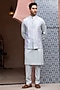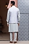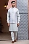 Featuring a sky blue nehru jacket in suiting base with thread work and machine embroidery. It is paired with a kurta and pants. The refined detailing and tailored fit make it a perfect choice for weddings, receptions, or formal festivities, exuding regal sophistication and contemporary style.