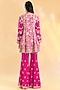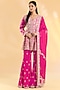 Featuring a rani pink kurta in organza base with hand and machine embroidery. It is paired with georgette sharara pants and a georgette dupatta. Accentuate it with zircon jewellery and heels for a wedding, sangeet or engagement ceremony.