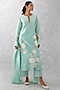 Featuring an aqua blue kurta in chanderi base with dori embroidery and organza detailing. It is paired with matching shantoon palazzo pants having lace detailing and an organza dupatta.