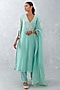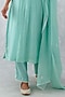 Featuring an aqua blue kurta in chanderi base with cutwork sleeves and thread embroidery. It is paired with matching shantoon palazzo pants and a chanderi embroidered dupatta.