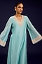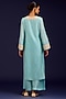 Featuring an aqua blue kurta in silk chanderi base with dori, sequins, and mirror embroidery. It is paired with modal satin palazzo pants. Accentuate with statement earrings and heels for festive ceremonies.