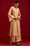 Featuring a beige kurta in silk chanderi base with dori, sequins, and mirror embroidery. It is paired with modal satin palazzo pants. Accentuate with statement earrings and heels for festive ceremonies.