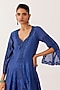 Featuring a blue anarkali in silk chanderi base with dori embroidery and screen print, including slit sleeves. It is paired with chanderi palazzo pants and a sheer organza dupatta. Accentuate it with statement jewellery and heels for a festive look.