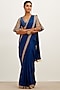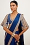 Featuring a blue saree in silk satin base with dori embroidery. It is paired with a matching chanderi embroidered blouse having cutwork sleeves.
