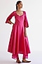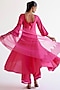 Featuring a fuchsia pink anarkali in cotton silk blend base with dori embroidery. It is paired with palazzo pants and a silk organza dupatta having dori embroidery and block print. Accentuate it with statement jewellery and heels for a festive ceremony.