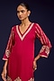 Featuring a fuchsia pink short kurta in cotton silk satin base with dori, sequins, and mirror embroidery. It is paired with dhoti pants and an ombre crepe dupatta. Accentuate it with statement earrings and heels for festive occasions.