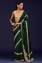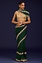 Featuring a green saree in chiniya silk base with embroidery. It is paired with a gajji silk embroidered blouse. Accentuate it with dangler earrings and heels for festive occasions or wedding ceremonies.