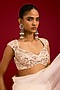 Featuring an ivory saree in modal satin and silk organza base with embroidery. It is paired with a gajji silk embroidered blouse. Accentuate it with dangler earrings and heels for festive occasions or wedding ceremonies.