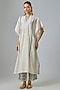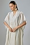 Featuring an ivory kaftan in silk chanderi base with aari work, screen and block print. It is paired with palazzo pants and a slip. Accentuate it with statement jewellery and heels for festive occasions.