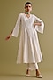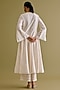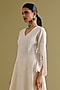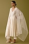 Featuring an ivory anarkali in silk chanderi base with dori embroidery and screen print, including slit sleeves. It is paired with chanderi palazzo pants and a sheer organza dupatta. Accentuate it with statement jewellery and heels for a festive look.