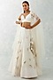 Featuring an ivory lehenga in silk organza base with thread and pittan work embroidery. It is paired with a gajji silk blouse and an embroidered sheer cape. Style it with statement jewellery and heels for a sangeet or wedding ceremony.