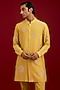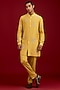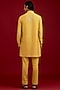 Featuring a mustard front-open kurta in cotton silk blend base with mirror work, sequins and dori embroidery. It is paired with cotton lycra slim pants. Accentuate it loafers and watch for festive celebrations, wedding or sangeet ceremony.