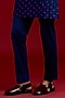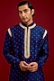 Featuring a navy kurta in chanderi bandhej base with mirror work, sequins and dori embroidery. It is paired with cotton lycra slim pants. Accentuate it loafers and watch for festive celebrations, wedding or sangeet ceremony.