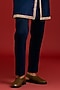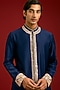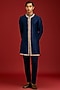 Featuring a navy front-open kurta in chanderi base with mirror work, sequins and dori embroidery. It is paired with cotton lycra slim pants. Accentuate it loafers and watch for festive celebrations, wedding or sangeet ceremony.