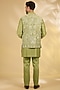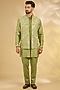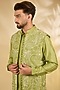 Featuring a pista green bundi jacket in cotton silk base. It is paired with a kurta and pants. Style it with mojaris for a wedding, mehendi, sangeet or engagement ceremony, exuding charm and elegance.