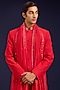 Featuring a red stole in chinniya silk base with mirror work, sequins and dori embroidery. Accentuate it kurta, pants and loafers for festive celebrations, wedding or sangeet ceremony.