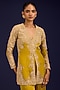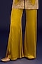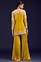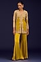 Featuring a mustard jacket in organza and modal satin base with mirror embroidery. It is paired with sharara pants. Accentuate it with statement jewellery and heels for festive ceremonies.