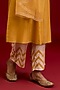 Featuring a mustard kurta in silk chanderi base with dori, sequins, and mirror embroidery. It is paired with shantoon palazzo pants and an organza dupatta. Perfect for a festive, sangeet and engagement ceremony.