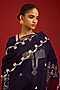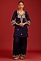 Featuring a navy blue kurta in cotton silk satin base with dori, sequins, and mirror embroidery. It is paired with farshi salwar pants and an organza dupatta. Accentuate it with statement earrings and heels for festive occasions.