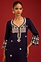Navy Blue Cotton Silk Satin Mirror Embroidered Kurta Set