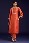 Orange Chiniya Silk Mirror Embroidered Kurta Set