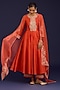 Orange Silk Chanderi Sequins Embroidered Anarkali Set