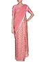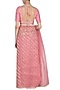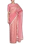 Featuring a pink leheriya saree in organza base with sequins, champagne gota pati, resham and zari embroidery and rose gold tissue trim. It is paired with matching blouse in raw silk base.