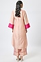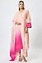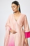 Featuring a pink angrakha kurta in tussar base with anchor line details. It is paired with block-printed palazzo pants and a silk ombre dupatta. Pair this outfit with statement chandbalis and embellished juttis for a festive-ready look.