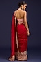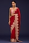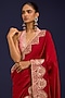 Featuring a red saree in chiniya silk base with embroidery. It is paired with an embroidered blouse. Accentuate it with dangler earrings and heels for festive occasions or wedding ceremonies.