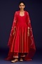 Red Cotton Silk Blend Dori Embroidered Anarkali Set