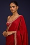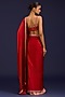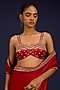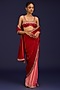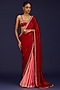Featuring a red ombre saree in modal satin base with embroidery. It is paired with a gajji silk embroidered bralette. Accentuate it with dangler earrings and heels for festive occasions or wedding ceremonies.