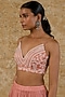 Featuring a blush pink lehenga in chanderi base. It is paired with a matching gajji blouse haing resham and sequins embroidery and a matching sheer organza dupatta having thread and cutwork embroidery.