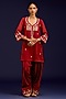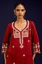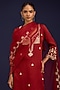 Featuring a rust kurta in cotton silk satin base with dori, sequins, and mirror embroidery. It is paired with farshi salwar pants and an organza dupatta. Accentuate it with statement earrings and heels for festive occasions.