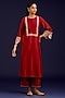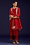 Rust Silk Chanderi Mirror Embroidered Kurta Set