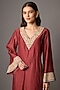 Featuring a rust kurta in silk chanderi base with dori, sequins, and mirror embroidery. It is paired with modal satin palazzo pants. Accentuate it with polki earrings and block heels for a festive occasion or wedding ceremony.