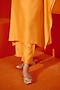 Featuring a saffron kaftan in silk chanderi base with patra work dori embroidery. It is paired with an inner and palazzo pants. Accessorise with dangler earrings and heels.