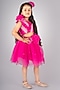 Featuring a hot pink skirt for girls in net base. It is paired with an embroidered top and a ring. Style it with cute hair accessories and sandals for a festive occasion.