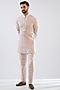 Featuring a blush pink indowestern jacket in silk brocade base with hand embroidery. It is paired with a chanderi silk self-embroidered kurta and pants. Perfect wear for a wedding, engagement or sangeet ceremony.