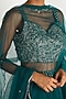 Featuring a turquoise lehenga in raw silk, georgette, and net base with zardosi embroidery. It is paired with a matching blouse and dupatta.