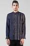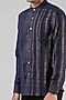 Featuring a navy blue box pleated shirt in handloom ahimsa silk brocade base. This contains only one piece.