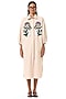 Beige Cotton Floral Embroidered Oversized Shirt Dress