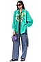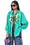 Featuring a green handcrafted shirt in cotton base with batwing sleeves and tie-up detailing.