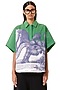 Featuring a multi-colored handcrafted oversized shirt in cotton base with engineered ajrakh print and a polo shirt collar. Accentuate it with straight-fit trousers or relaxed denim, minimal hoops and loafers or sneakers for a clean, effortless look, ideal for casual outings, brunch dates, or everyday wear.