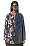 Featuring a multi-colored handcrafted oversized shirt in cotton base with shirt collar and embroidery. Balance the structure with tailored pants and sleek heels for effortless elegance.