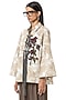 Featuring a multi-colored handcrafted tie-up shirt in cotton base with shirt collar and print. Balance the structure with tailored pants and sleek heels for effortless elegance.