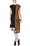 Navy Blue and Mustard Asymmetric Jacquared Panelled Dress