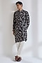 Featuring a black kurta in chanderi base with geometric print and thread embroidery. It is paired with terry cotton pyjama pants. Perfect attire for any festive occasion or sangeet ceremony, exuding traditional charm and timeless elegance.